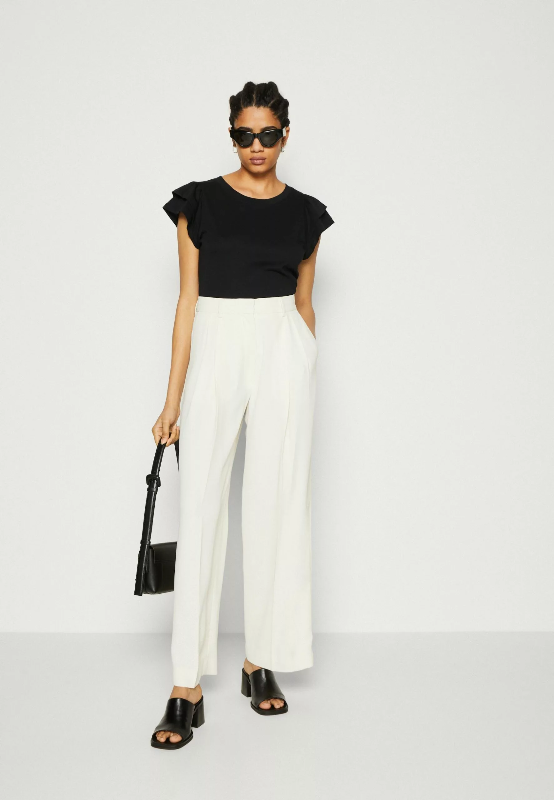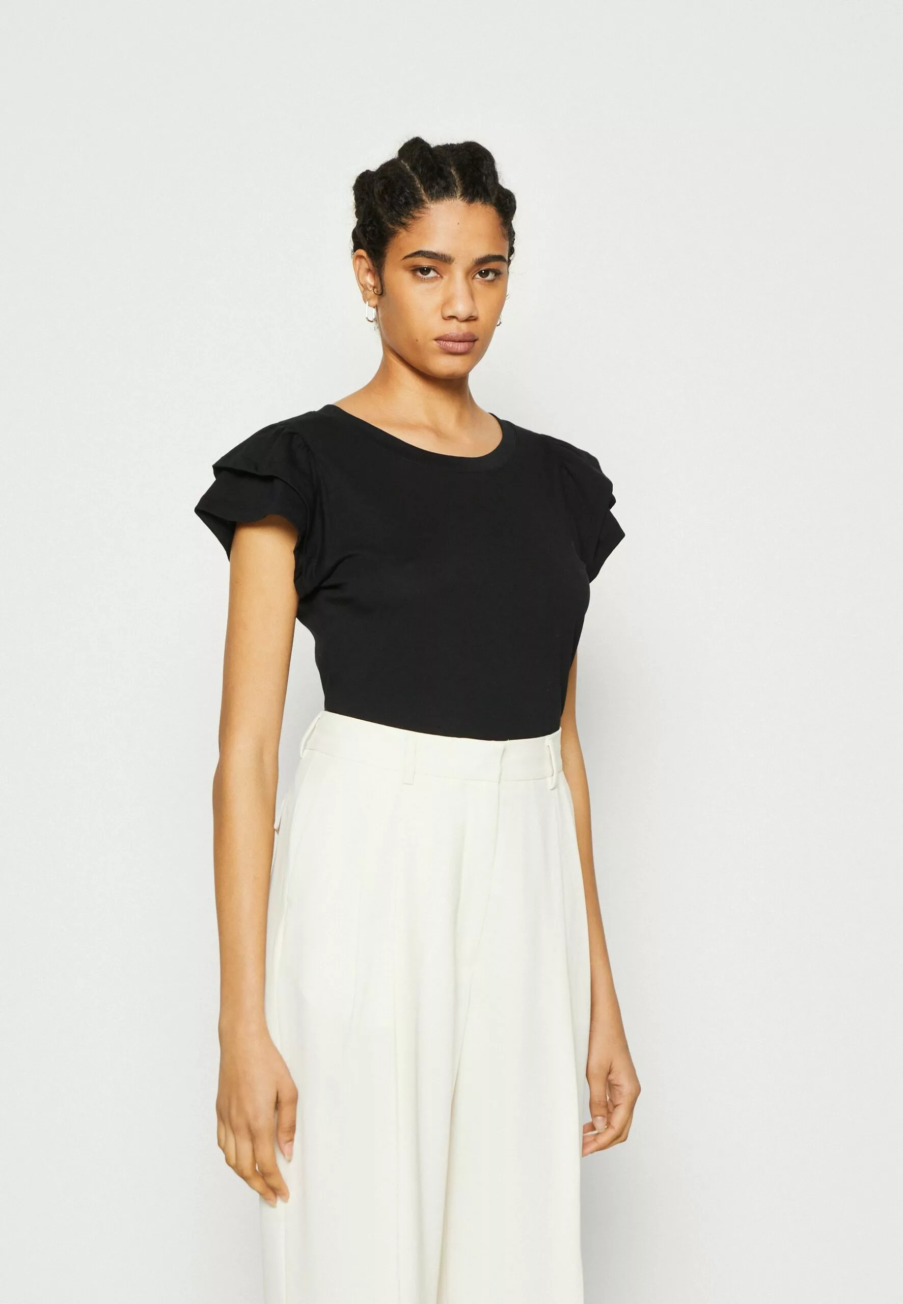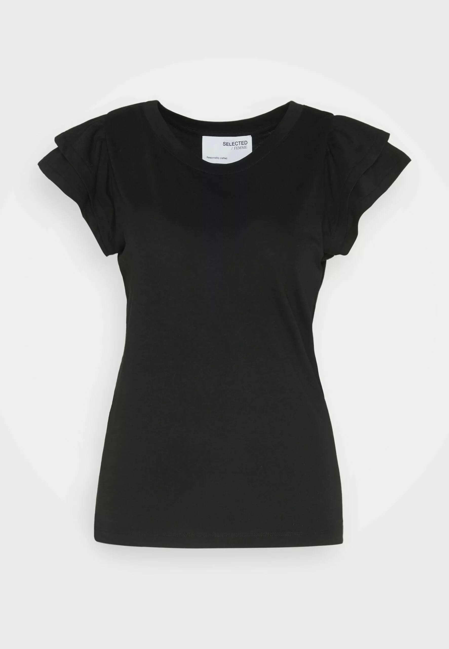 Selected Femme Slfcamila Ruffle Tee – T-Shirts Med Print – Black