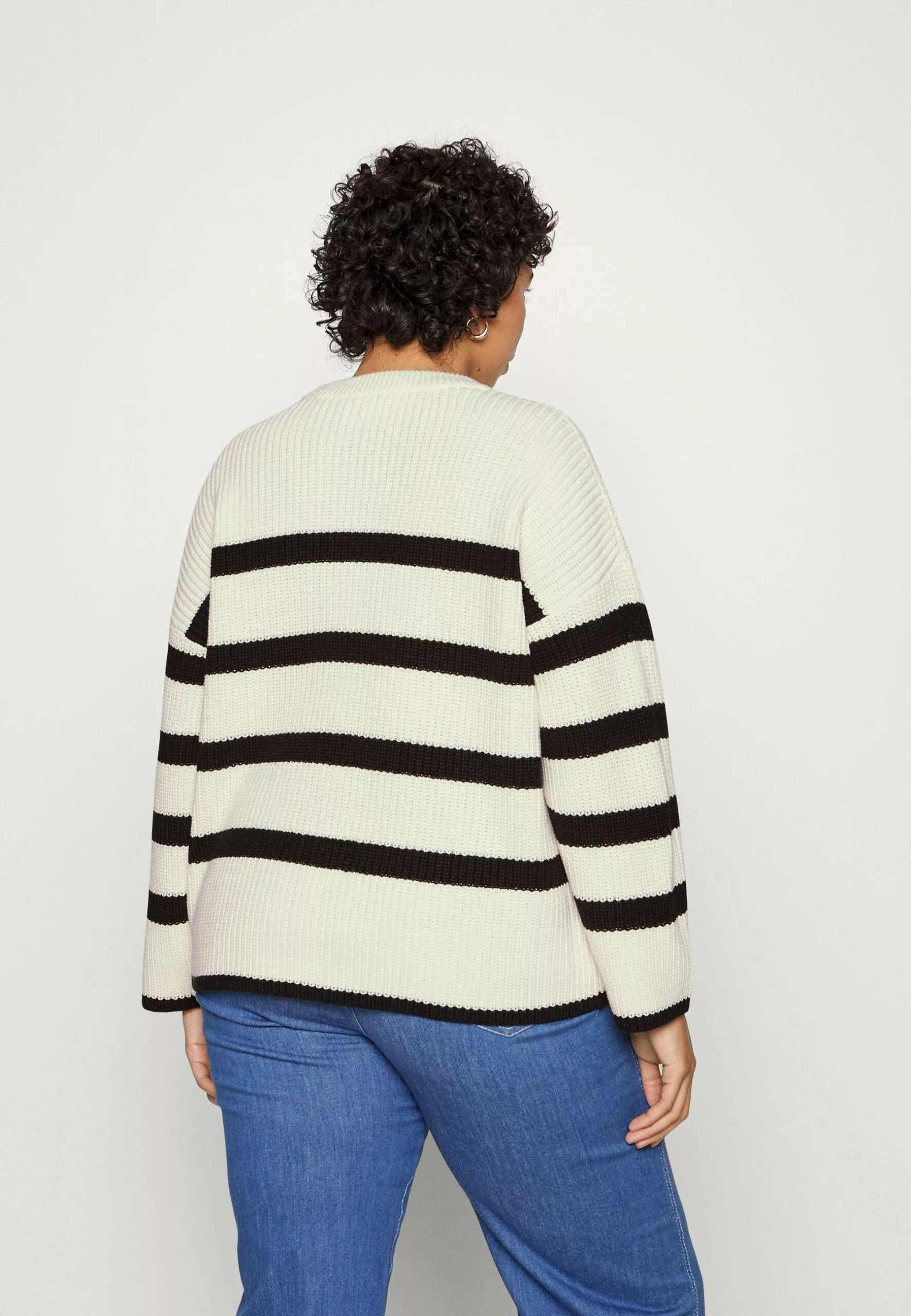 Slfbloomie O Neck Plus Size – Strikkegenser – Snow White/Black